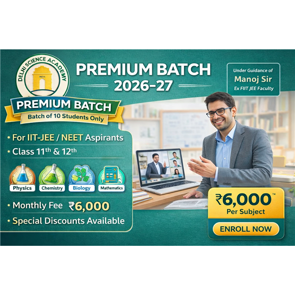 Delhi Science Academy Premium Batch is designed for serious IIT-JEE and NEET aspirants of Class 11th & 12th.